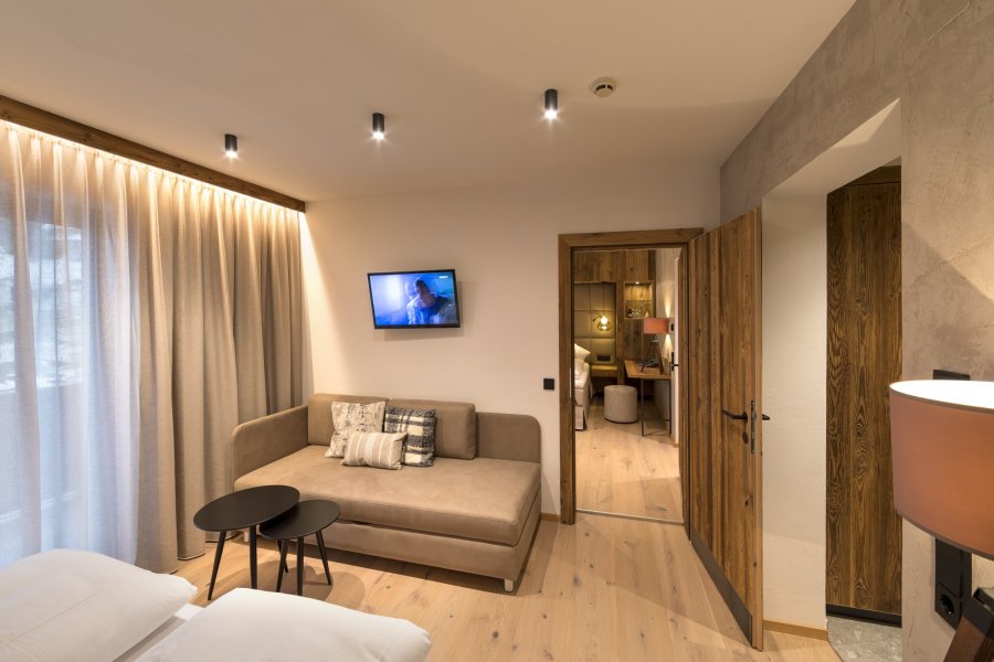 Die Familiensuite Träumerei mit 54m² und Balkon: Hier gibt's den ganzen Komfort doppelt - zwei Doppelzimmer nebeneinander mit Verbindungstüre.