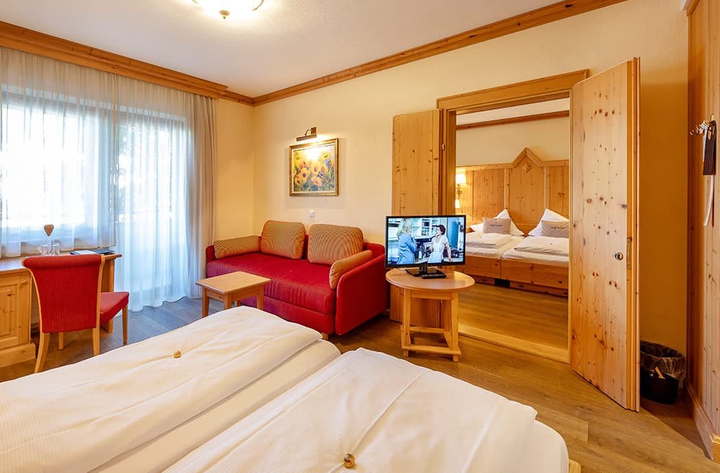 Verbringen Sie gemeinsame Urlaubsstunden mit Ihren Kindern und genießen Sie auch ungestörte Momente zu zweit. Die Familiensuite ist mit Holzboden und zwei großen Flachbildschirmen ausgestattet.