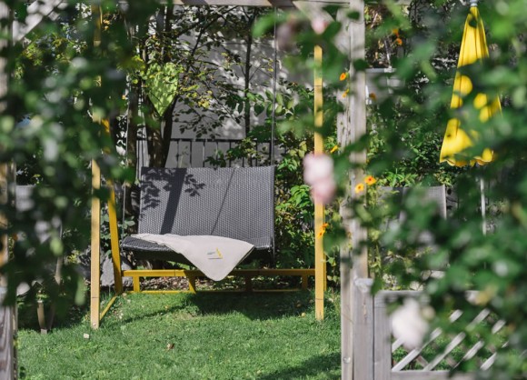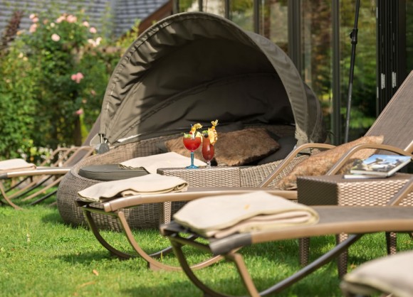- Outdoor-Terrasse und Indoorbereich mit Kuschelliege und modernen Sitzgelegenheiten
